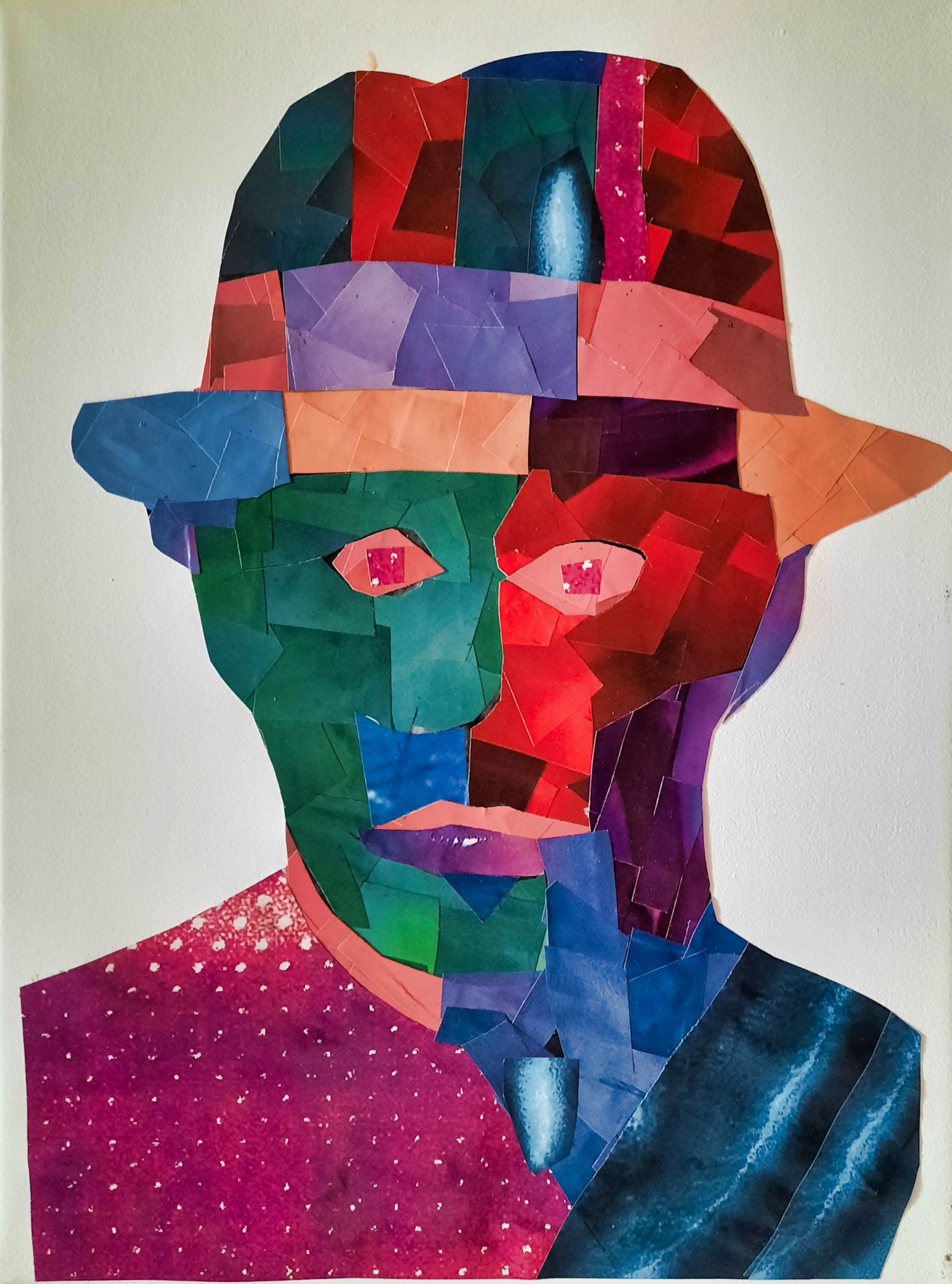 Joseph und seine Brüder II von / vor 56 Jahren In den Umrissen eines Künstlers, je 30 x 40cm, Collage auf Leinwand, 2022